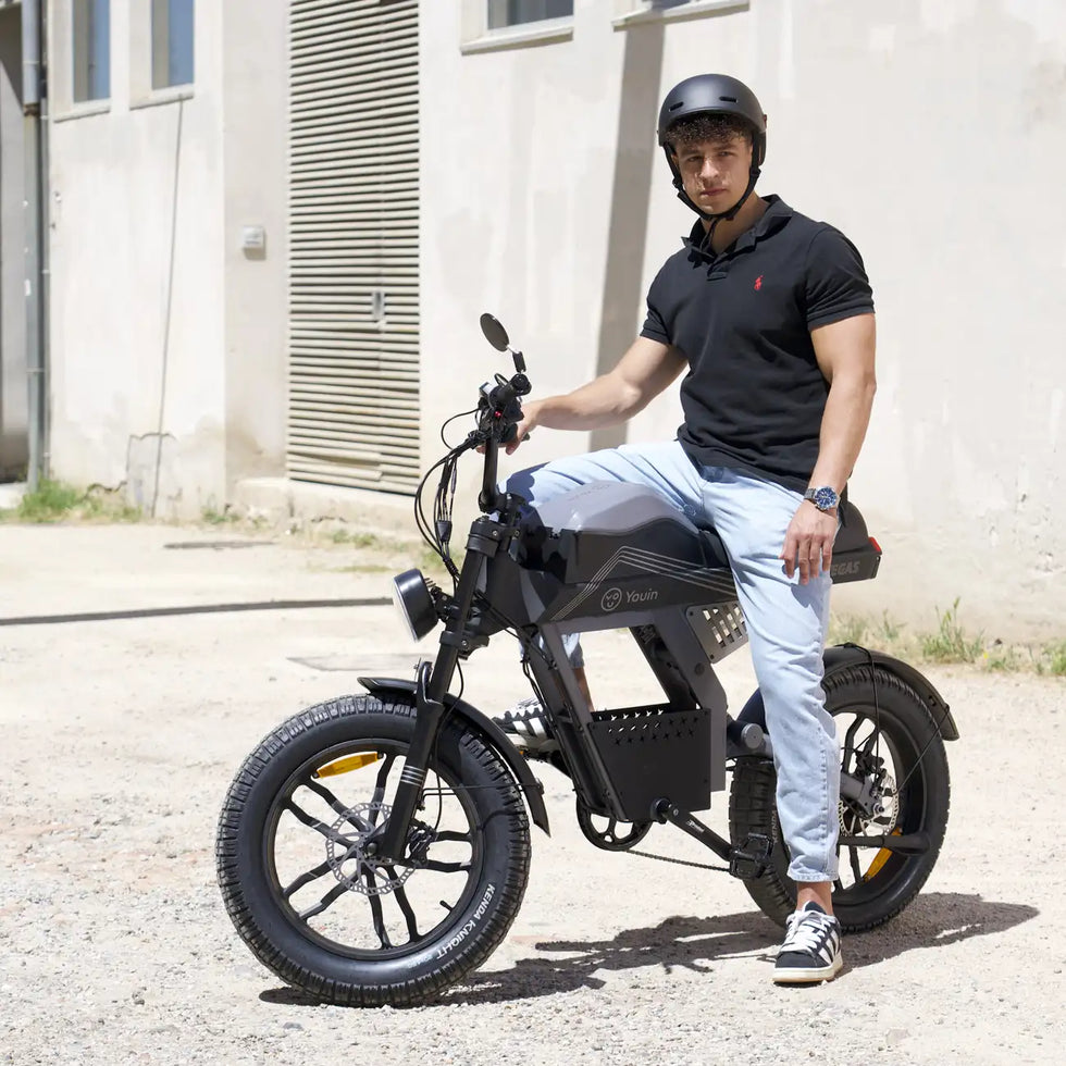 La Youin Las Vegas es una fat bike eléctrica potente y robusta, pensada para quienes buscan máxima comodidad y autonomía. Su doble suspensión y ruedas de 20” fat garantizan un pedaleo suave en ciudad y terrenos irregulares.