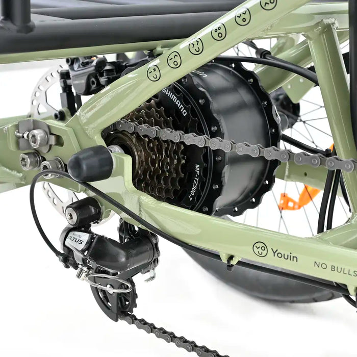 O Youin Dover possui um diferencial no eixo traseiro , uma característica essencial que melhora significativamente a estabilidade em curvas e manobras. Este sistema permite que as rodas traseiras rodem a velocidades diferentes, reduzindo o risco de capotamento e proporcionando uma condução mais suave, segura e equilibrada.