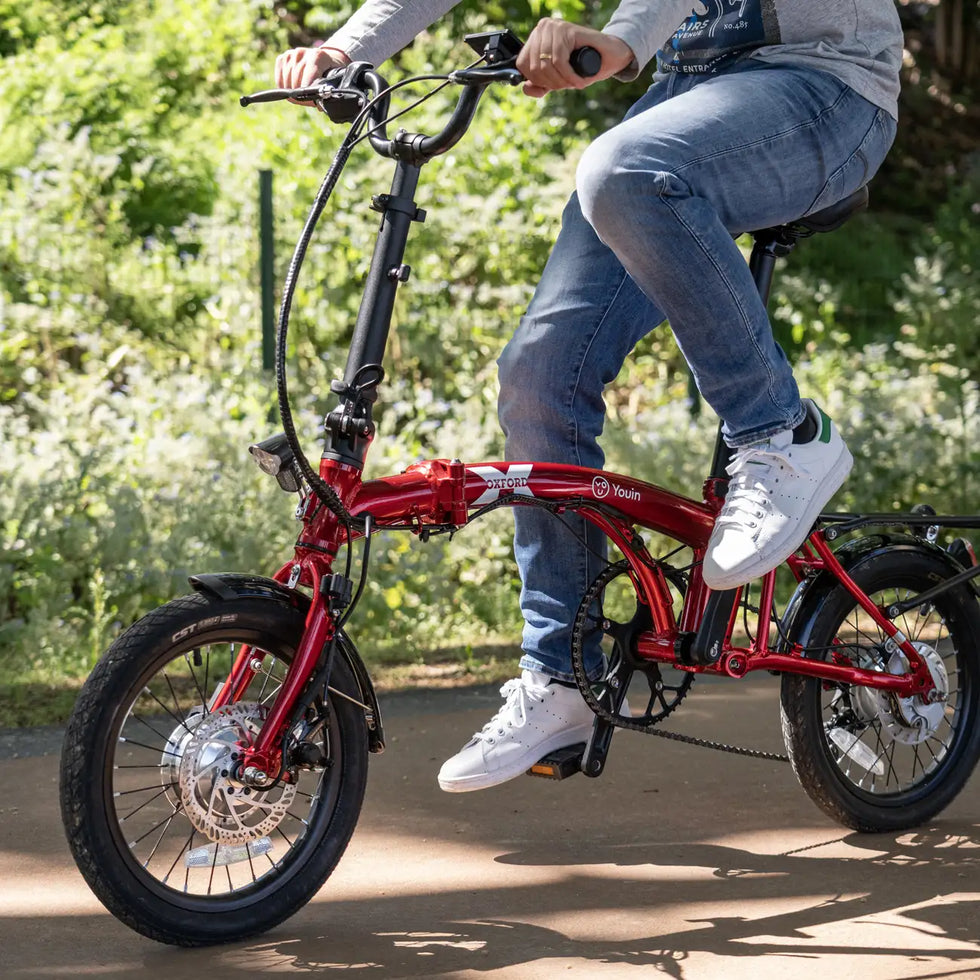 A Youin Oxford é uma bicicleta elétrica dobrável, leve e compacta, com apenas 17,5 kg de peso. Transporta-se facilmente no porta-malas, elevador ou reboque graças às suas rodas incorporadas. A bateria Powertech integrada no quadro oferece proteção contra choques e água. O câmbio Shimano Nexus de 8 velocidades proporciona uma condução suave e precisa.